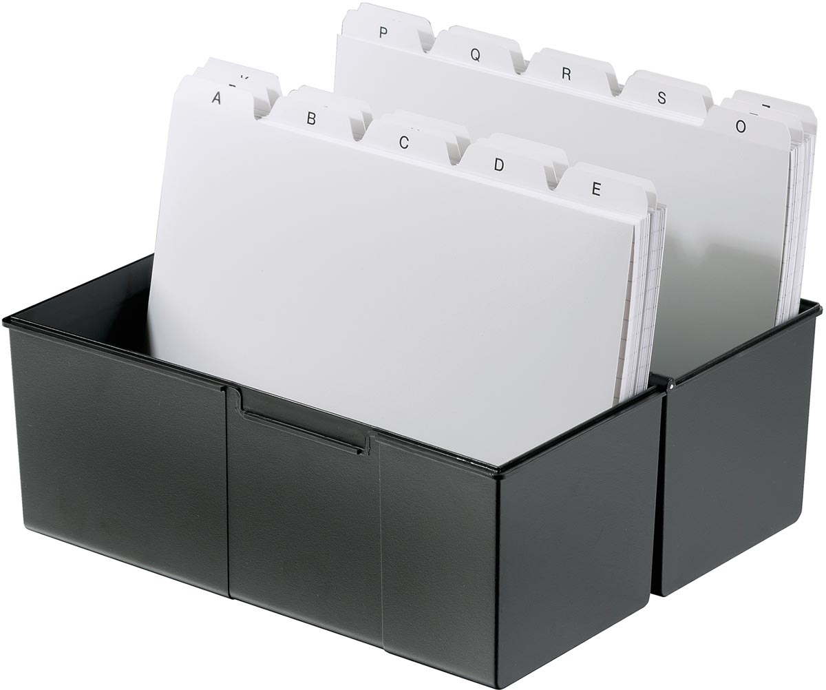 Capaciteit: 300 tot 450 kaarten. Uit kunststof. Het deksel kan volledig opengeklapt worden, waardoor de capaciteit verdubbeld wordt. Systeemkaarten niet ingebrepen.
