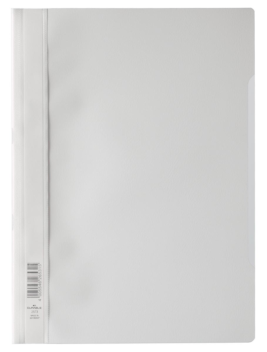 Map van standaard kwaliteit met doorzichtige voorzijde. Zichtsnelhechtmappen van DURABLE zijn ontworpen voor uiteenlopende toepassingen, zoals rapporten, offertes, notities en opslag van documenten. Ruime kleurkeuze en etiketteringsmogelijkheden. Kan worden uitgerust met een ordnerhechter (art.nr. 2996), om op te bergen in ringmappen. Specificaties: Voor ft A4 Uit PP Met transparant voorblad en etiketvenster over de gehele lengte Uitsnijding in de voorzijde om gemakkelijk te kunnen bladeren 100 %recycleerbaar