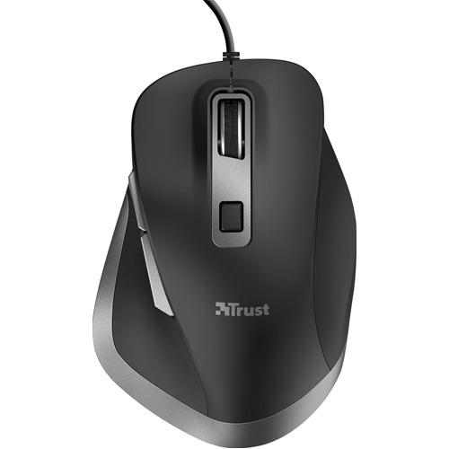 Ergonomisch verantwoord Dankzij een comfortabel gebogen en ergonomisch ontwerp, zes gemakkelijk toegankelijke knoppen en verstelbare DPI, zorgt de Trust Fyda muis ervoor dat je productief blijft zonder dat er lichaamsklachten optreden. De doordachte vorm van de Fyda is, samen met de pinksteun, ontworpen om gemakkelijk te werken, zodat je de hele dag aan de slag blijft zonder dat je je zorgen hoeft te maken over vermoeidheid. Volledige controle De Trust Fyda is uitgerust met in totaal zes knoppen, waarvan er twee gemakkelijk met de duim bereikbaar zijn. En dankzij de instelbare DPI-snelheden, variërend van 600 tot 5000 DPI, heb je volledige controle over je documenten, spreadsheets en games; het maakt niet uit of je de cursor snel of nauwkeurig wilt verplaatsen, de Trust Fyda zorgt ervoor. Het gemak van een kabel Je hoeft je geen zorgen te maken over batterijen. De Trust Fyda muis maakt gebruik van een USB-kabel. Wel zo gemakkelijk. Hierdoor beschik je over een stabiele verbinding die altijd werkt vanaf het moment dat je de muis op je pc of laptop aansluit.