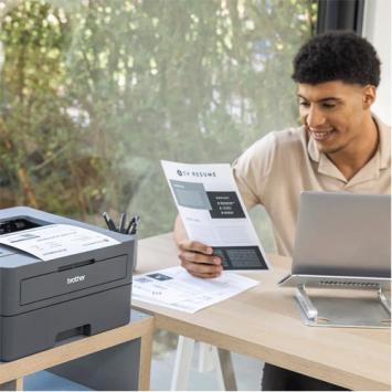 Deze compacte zwart-witlaserprinter biedt een brede range aan functies, waaronder een printsnelheid tot 32 pagina’s per minuut en automatisch dubbelzijdig printen. Dankzij de ruime papierlade hoeft u niet steeds het papier aan te vullen en kunt u langer ongestoord doorgaan met printen. Daarnaast kunt u probleemloos printen vanaf iedere locatie en vanaf smartphone of tablet, via de Brother Mobile connect app, zodat u slimmer en efficiënter kunt werken.