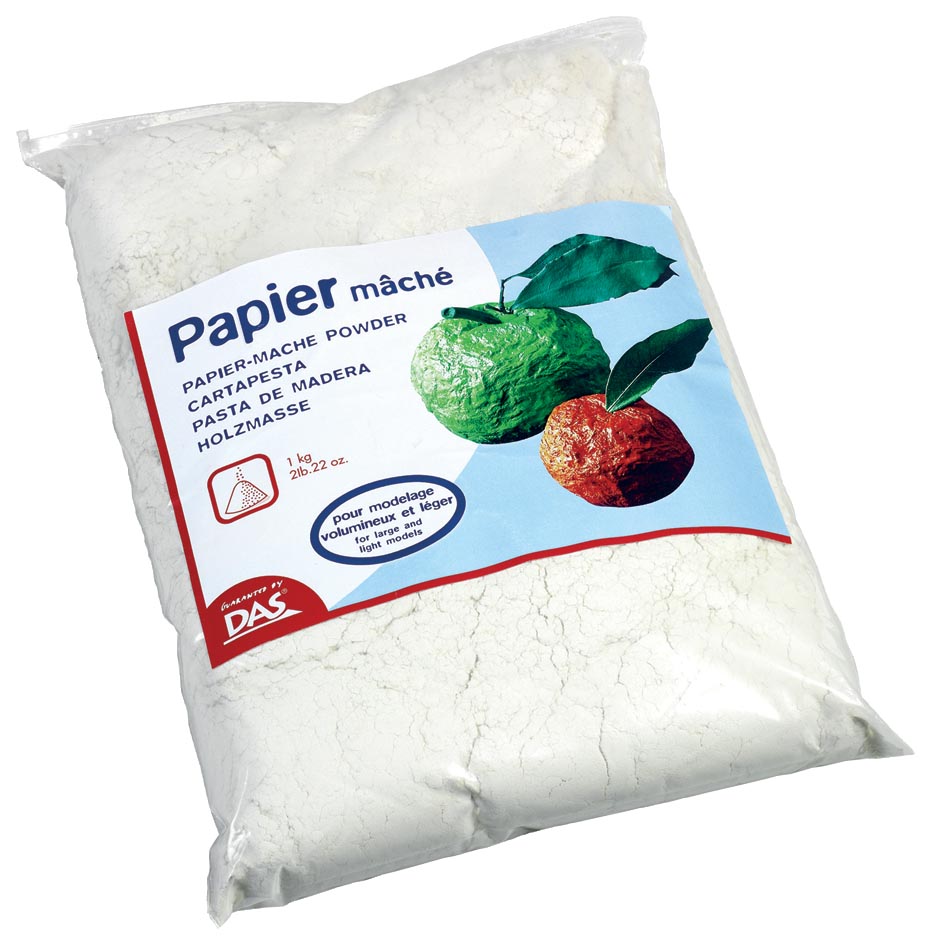 Poeder om zelf papier-maché te maken. Langzaam drogend. Een uitstekend alternatief voor de traditionele papier-maché. Zak van 1 kg.